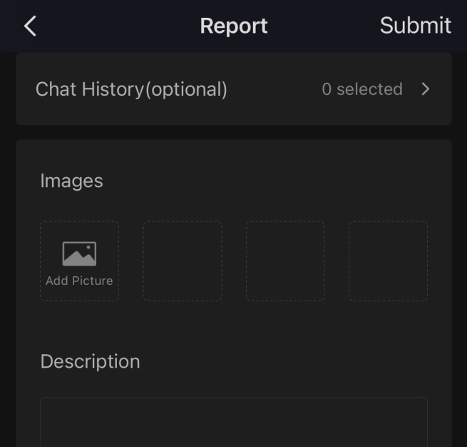 3. Choose the relevant chat messages or attach screenshots as evidence, and provide a detailed description of the specific violation.
