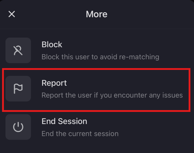 If during a Control Roulette session you encounter messages involving money requests, harassment, references to minors, threats of violence, racial discrimination, or any other violations, please report the user immediately for platform review.